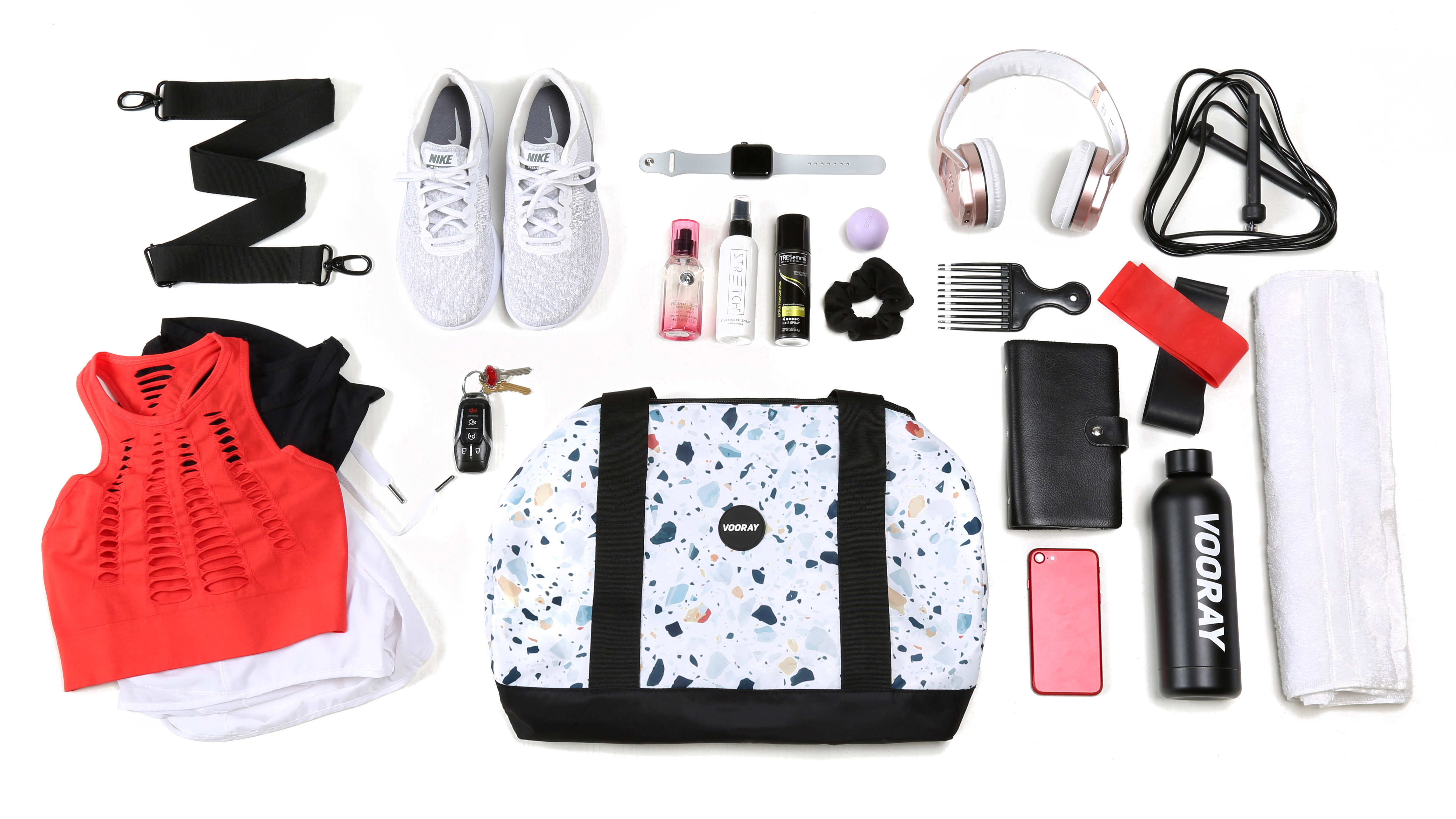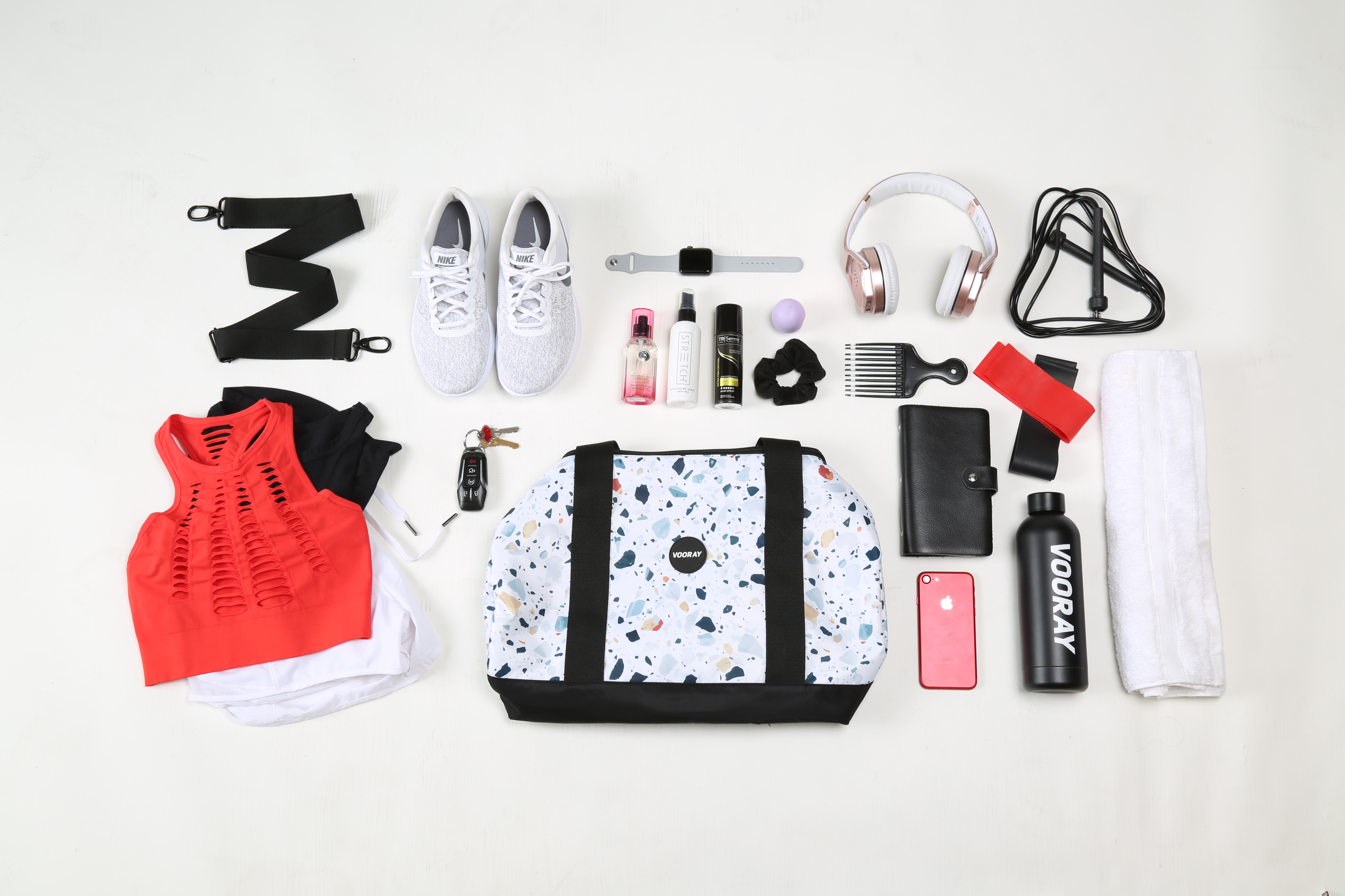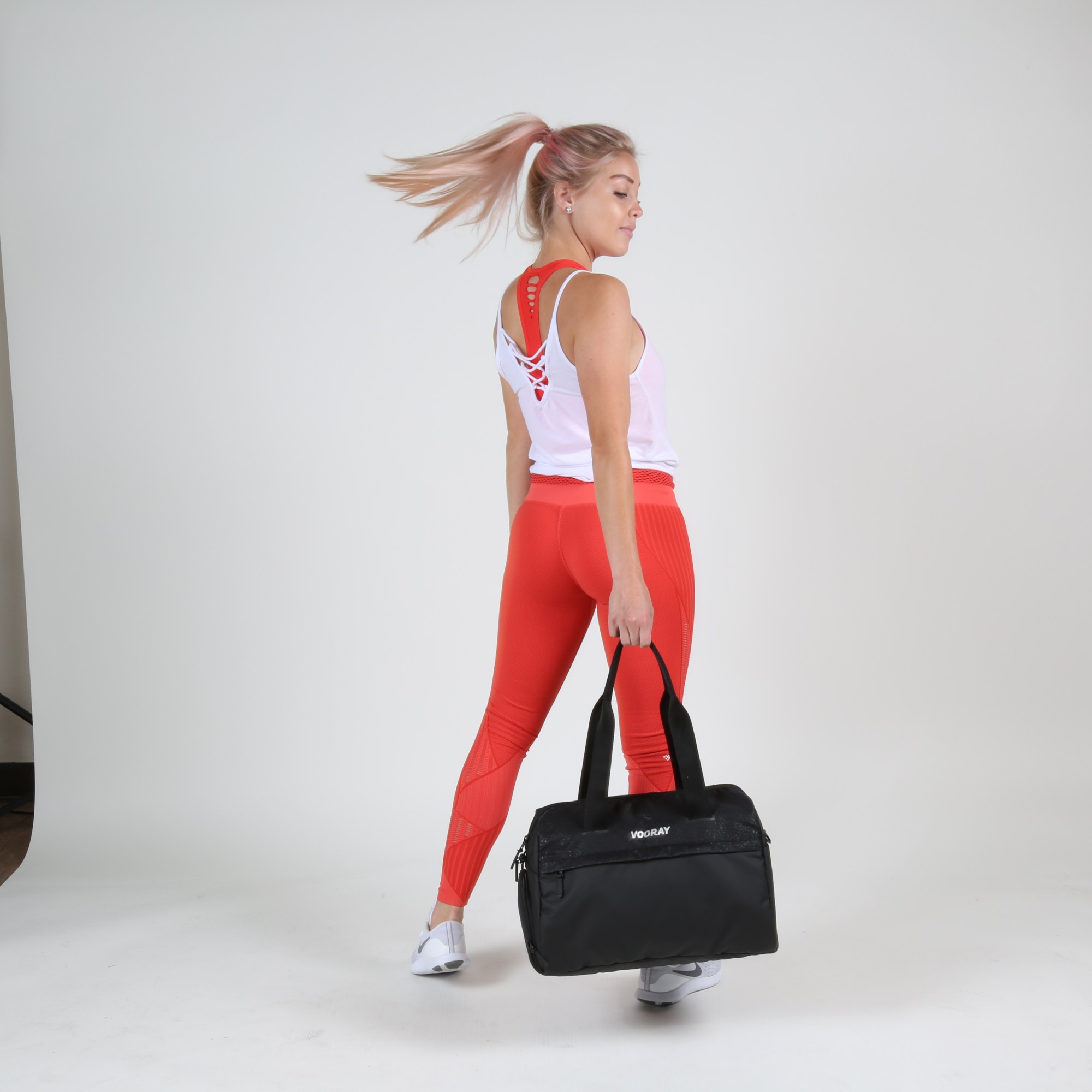 Used photoshop to white background edit photo and change the color of the model’s pants and sports bra to match marketing material.