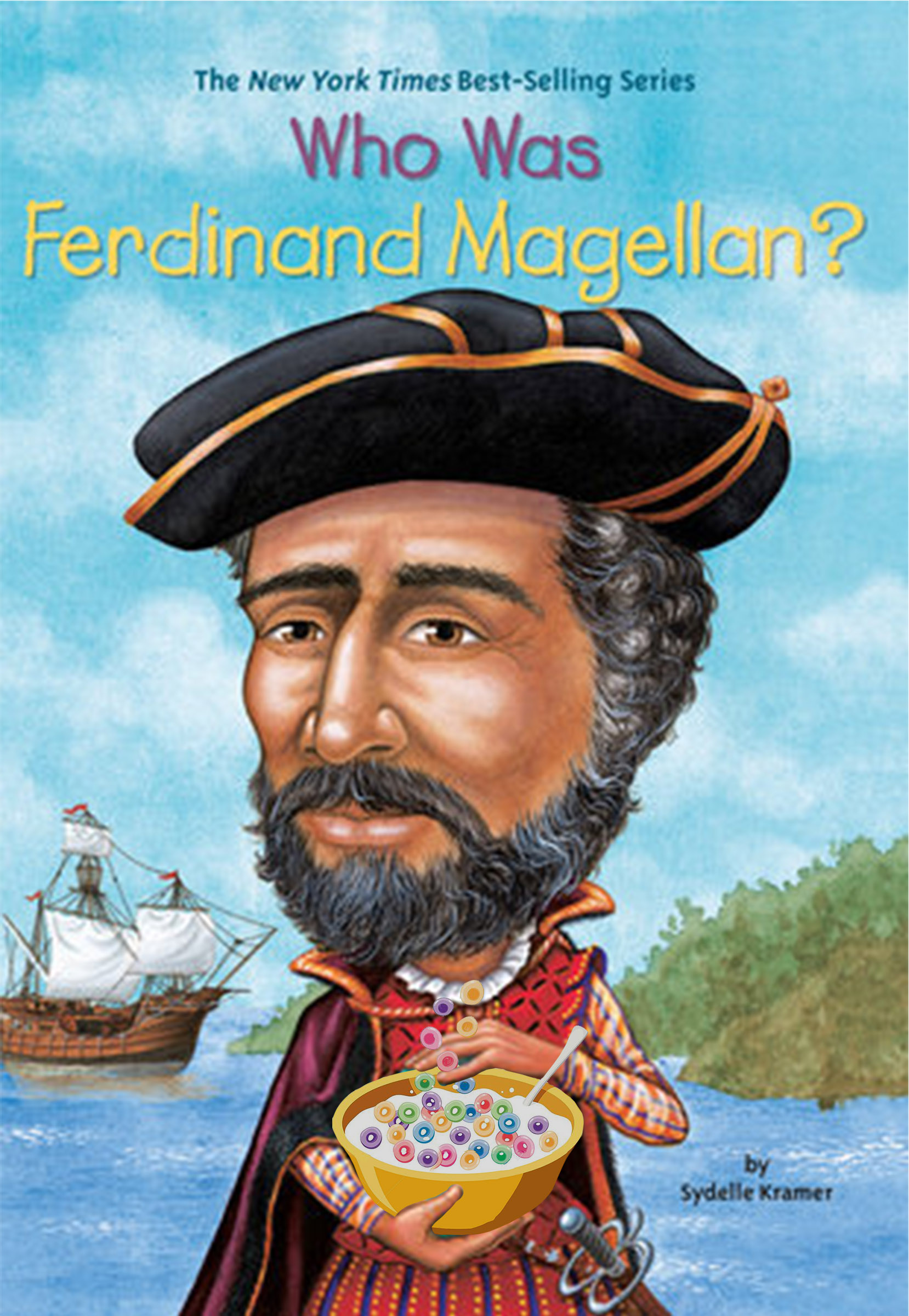 Use photoshop to replace the globe with a cereal bowl into the hands of cartoon.